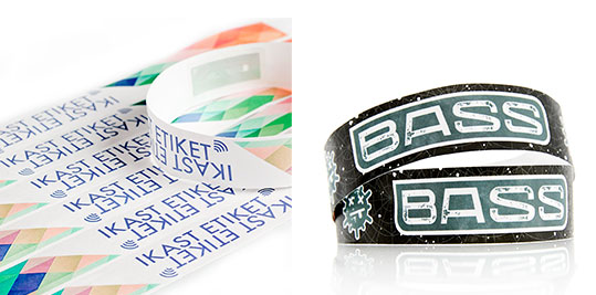 Design pappersarmband med svart tryck och fullfärgad tryck.