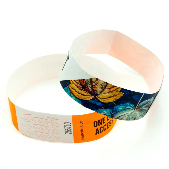 Vi på Ikast Etikett tillverkar pappersarmband till otaliga evenemang. Pappersarmband är otroligt mångsidiga och lätta att anpassa med tryckt text eller bilder. Dessutom är pappersarmband en billig lösning som vi kan skicka ut snabbt, med eller utan tryck. Vi ser att pappersarmband används till allt från små fester till större festivaler med tusentals besökare, och oftast används de för att de är en säker lösning som gör det svårare att fuska.
